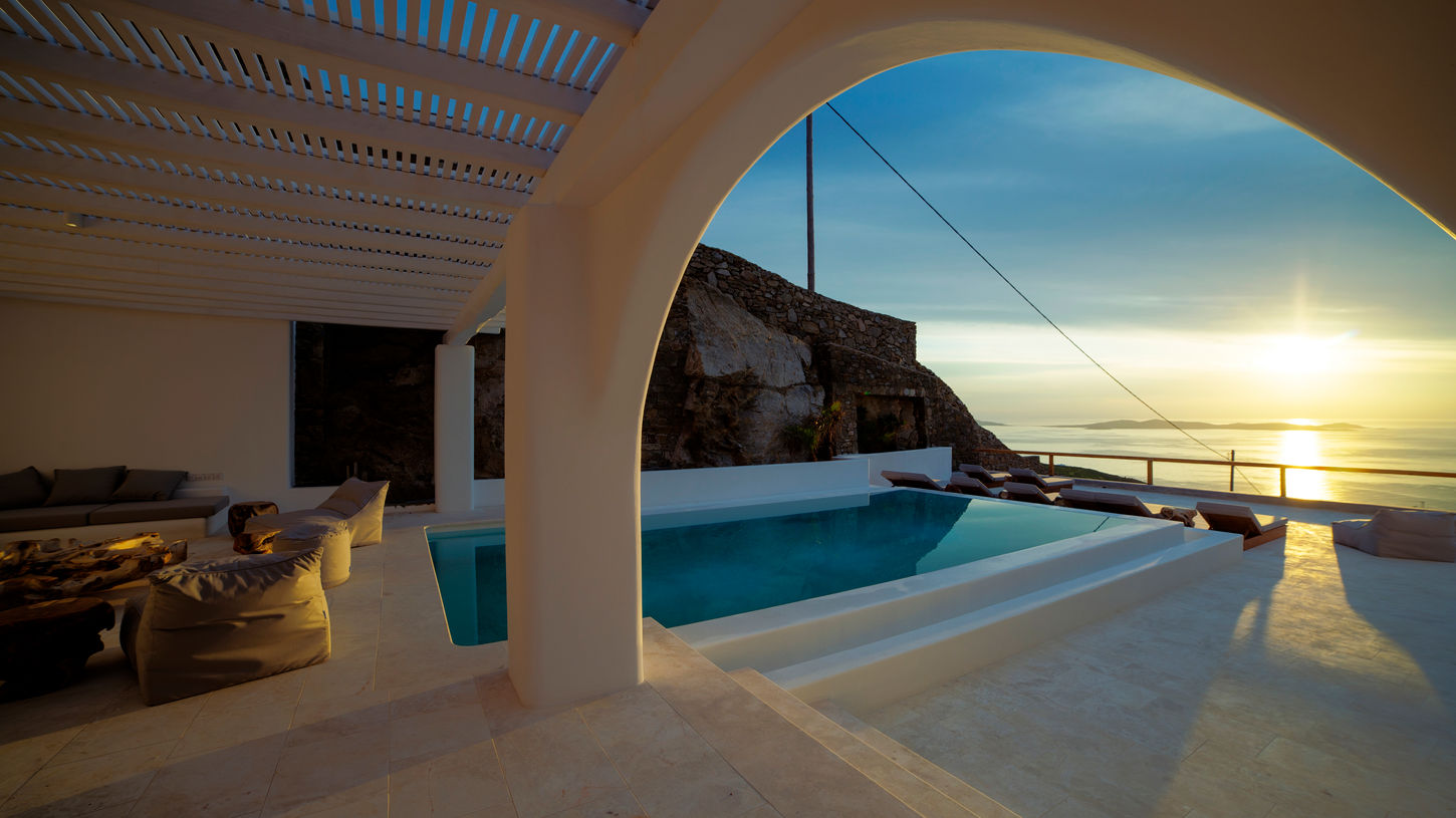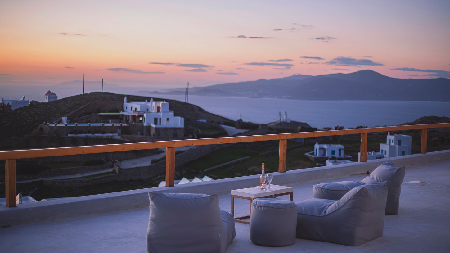 A 2 level luxurious villa, part of a glorious complex of Villas and Suites. Located at the highest point of the complex, with views that range from the island of Tinos to the island of Delos. Ground level: living room, kitchen, dining room, guest’s W.C.. One master bedroom with (160cm*200cm) & one master bedroom with two single beds (100cm*200cm) Upper Level: two master bedrooms with a double bed each (160cm*200cm) & a master bedroom with two single beds (100cm*200cm).