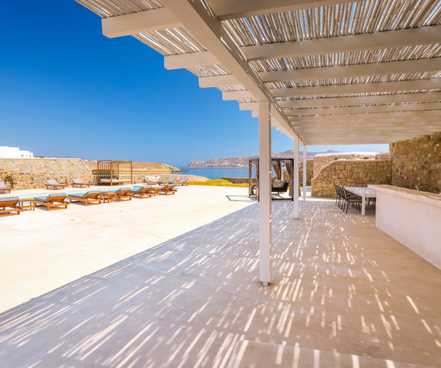 The Concept: Simplicity, the Art of life! A stylish reflection of the cosmopolitan Mykonos lifestyle but with a traditional touch, Villa Major, sits gracefully on the imposing spot of Kanalia, affording a divine view of the breathtaking Aegean Sea all the way to the islands of Syros and Tinos. Tranquility, serenity, space and calm are waiting to welcome you at an impeccable villa and yet you are only 15 minutes away from the famous Mykonos Town as well as 15minute drive from Nammos, one of the four biggest clubs all over the world.