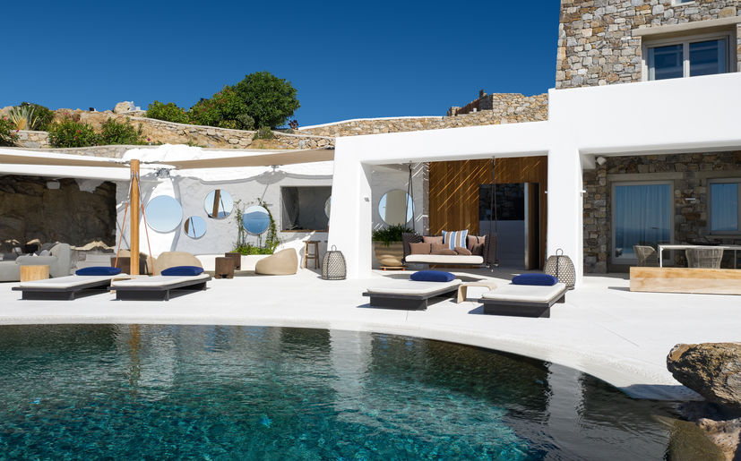 Infinity pool (12 x 6 m, oval shape, heated upon request) with panoramic sunset viewsIn-wall pool bar